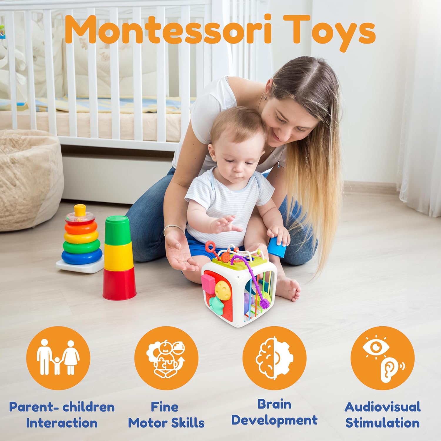 Montessori Toys for Babies : Montessori toys for babies is designed to improve babies color, pattern, sound and shape cognition as well as fine motor skills in an engaging, fun and interactive way. Great Montessori toys that engage your child for hours and develop your child's mind, senses and coordination.